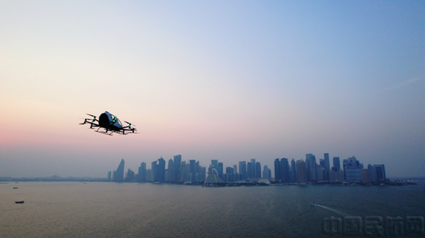 EH216-S无人驾驶载人航空器在多哈港与卡塔拉之间飞行