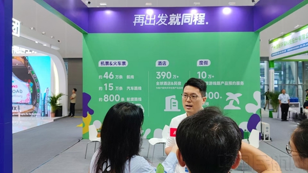 9月8日上午,同程旅行工作人员在广州国际机场博览会现场回答媒体记者提问