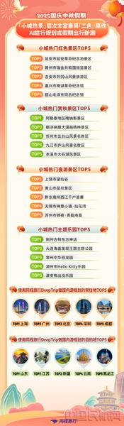 此外,今年国庆中秋假期,越来越多的用户通过OTA平台上的AI工具规划假期出游行程。同程旅行数据显示,国庆中秋假期的国内出游用户中,通过DeepTrip规划国内游行程后实现闭环预订的用户数量相比五一假期也显著增长。其中,常住地为上海、广州、北京、深圳、成都的用户使用DeepTrip进行假期出游规划的频率最高;使用DeepTrip做国内游行程规划最高频的五个目的地省份为:山东、江苏、新疆、云南、黑龙江。