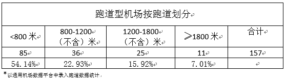 从技术数据上看,800米以下跑道仍为主流设施,显示了明显的通航特征。