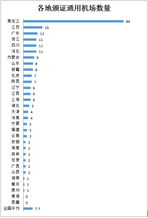 从各省对比情况看,河北颁证数量(11个)首次进入两位数俱乐部,机场密度(按地理面积计)也超过了邻省山东。新疆今年增幅明显(已增加4个),但与其现有存量比起来还有很大空间。