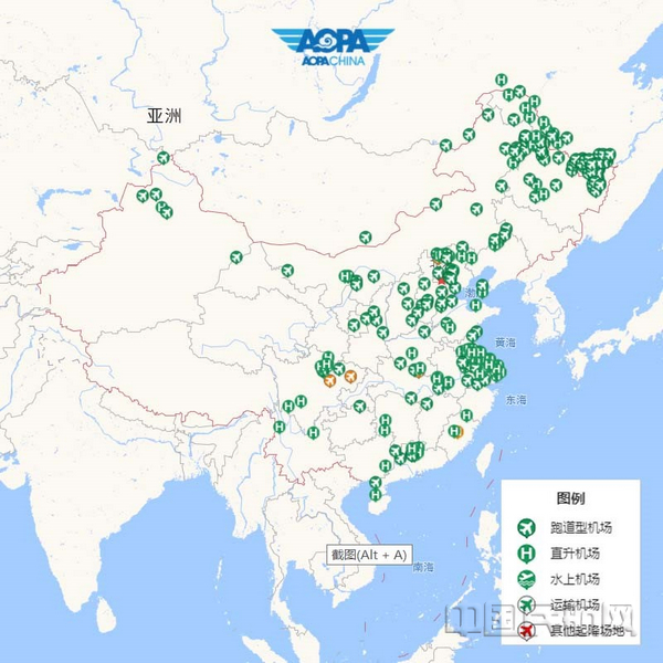 截止目前,全国各类型机场已经聚齐,除了已有的跑道型机场和各类直升机场外,出现了2个颁证水上机场(苏州澄湖与上海金山)。