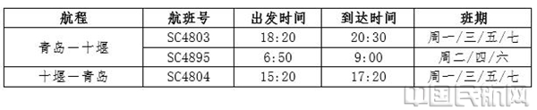航线加密后,青岛与十堰两地间的往返航班实现每日覆盖,单程飞行时间约2小时,早、晚双时段布局精准匹配商务、休闲等不同旅客的多元化出行需求。具体航班信息如下: