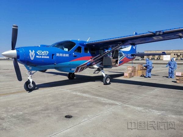 2月17日早上9:30,一架“战马”涂装的赛斯纳208飞机准时从荆门漳河机场起飞,调机至浙江新昌万丰机场,平稳降落后迅速进行防疫物资装载、飞机加油等保障工作;下午1:30飞机再次从浙江新昌万丰机场起飞;4:34降落武汉天河机场并顺利完成物资卸货交付;当飞机再次启程返航时,时间已近晚上6点。
