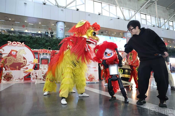 活动启动当天,北方舞狮表演拉开活动序幕,AI(人工智能)机器人紧随登场表演,憨态可掬的动作与科技感十足的表现形成奇妙呼应,传统年俗与前沿科技碰撞,让现场欢笑不断。