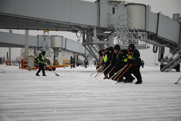 同时,机场加强航站楼运行保障管理,确保供暖系统安全稳定运行,保障餐饮、商业服务正常开放;对上下桥通道、贵宾区等重点区域及时清扫积雪、铺设防滑设施,有效降低旅客通行风险,以细致周到的服务举措为旅客驱散冬日严寒,切实保障出行体验。