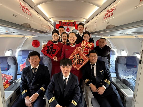 从成都天府飞往新加坡的国航CA403主题航班变身“新春移动客厅”,红火的灯笼、精致的窗花、灵动的马年贴画点缀其间,与旅客在万米高空同庆除夕,共度年味十足的团圆夜。