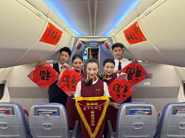 从上海浦东飞往新加坡的国航CA825航班以福字、中国结、缤纷新春挂饰增添年味,并推出妙趣横生的团扇拓印活动,旅客亲手拓下美好新春祝愿。