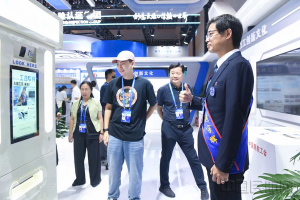 中国民航工会展区融入了飞机、发动机、塔台等民航特色元素,吸引了来自全国各地的观众前来观看,身临其境了解民航职工创新创造成果,感受民航职工创新实力和创新文化。观众在国产大飞机C919适航审定展板前,了解适航审定工作默默无闻的艰苦付出和突破性成就;饶有兴致地戴上VR(虚拟现实)眼镜开展机务检修,体验南航机务创新带来的高效、便利和民航人对航空安全执着专注、精益求精、一丝不苟、追求卓越的坚持。