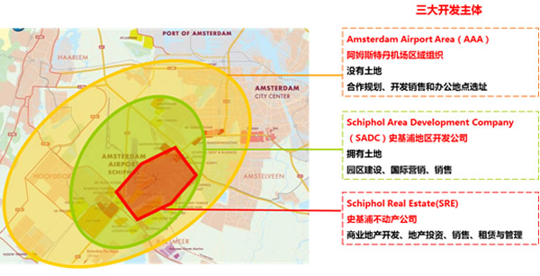第三个是拓展区的开发,是由阿姆斯特丹机场区域组织(Amsterdam Airport Area--AAA)这个组织开发。