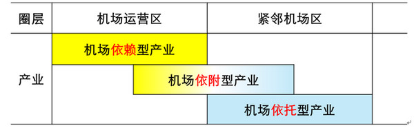 ①不完全依赖于机场资源,可以布局在紧邻机场区,但选址时由于企业的最大化利益追求,往往优先选择机场运营区;②由于产业的特殊性,一部分环节直接依赖机场资源,另一部分无须依赖机场资源,布局横跨两区。