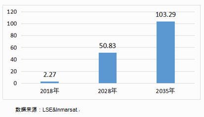 图2:2018-2035年亚太地区机上互联市场收入(亿美元)