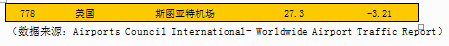表2:2016年全球前50大机场排名(旅客吞吐量)