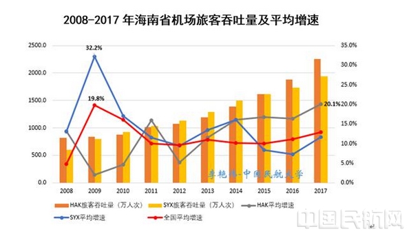 2、海口机场于2016年旅客运输规模超过三亚机场,且2017年突破了2000万人次
