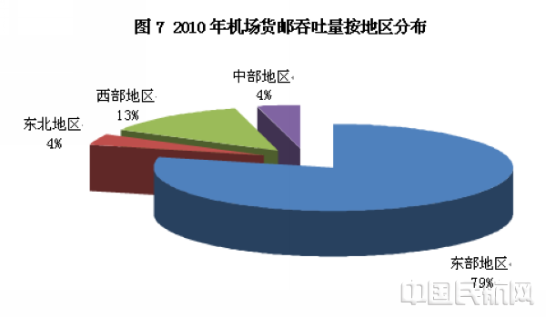 其中:2010年东部地区完成货邮吞吐量898.6万吨,东北地区完成货邮吞吐量40.8万吨,中部地区完成货邮吞吐量42.7万吨,西部地区完成货邮吞吐量147.0万吨。