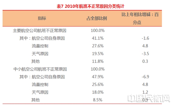 2010年,中小航空公司计划航班26.0万班次,其中正常航班17.9万班次,不正常航班8.1万班次,航班正常率68.8%。