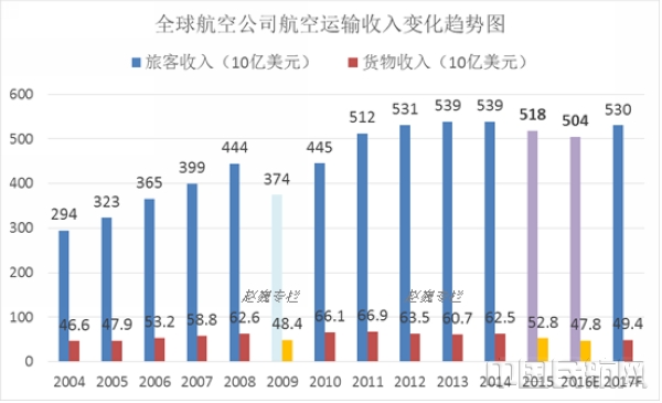 航空运输业务收入下降并不影响全球航空业经营和盈利能力。2015-2017将是全球航空业最赚钱的历史黄金期。
