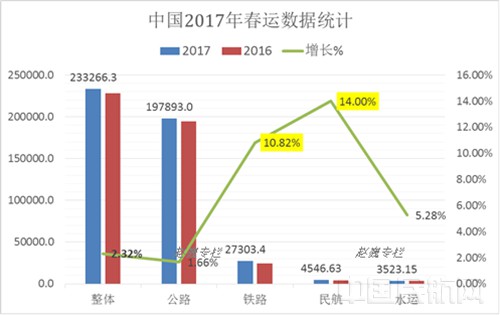 2017年春运整体增长2.32%。
