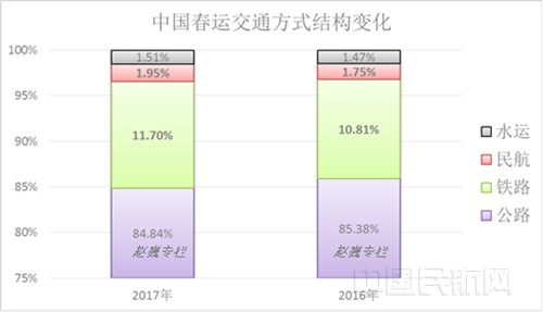 民航占比由2016年的1.75%,提升到2107年的1.95%。
